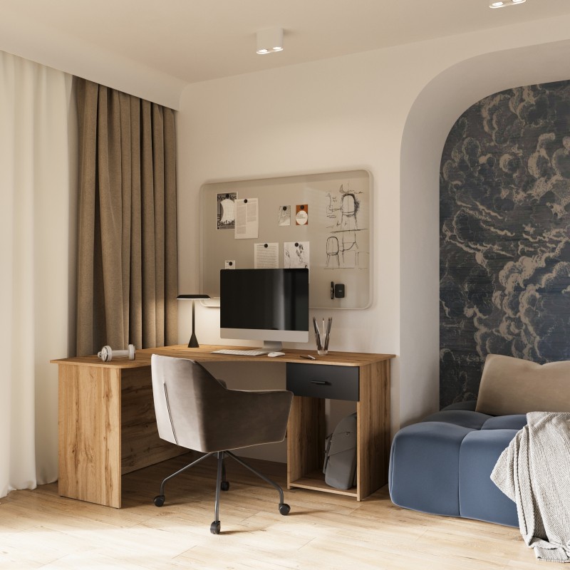 Dzięki przestronnemu blatowi, biurko CANTONE oferuje doskonałą przestrzeń na laptopa, monitor oraz wszelkie dokumenty, tworząc idealną bazę do wydajnej i komfortowej pracy w domu lub w biurze.