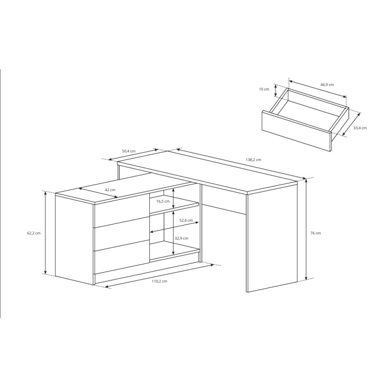 Dzięki przestronnemu blatowi, biurko AURELIO oferuje doskonałą przestrzeń na laptopa, monitor oraz wszelkie dokumenty, tworząc idealną bazę do wydajnej i komfortowej pracy w domu lub w biurze.