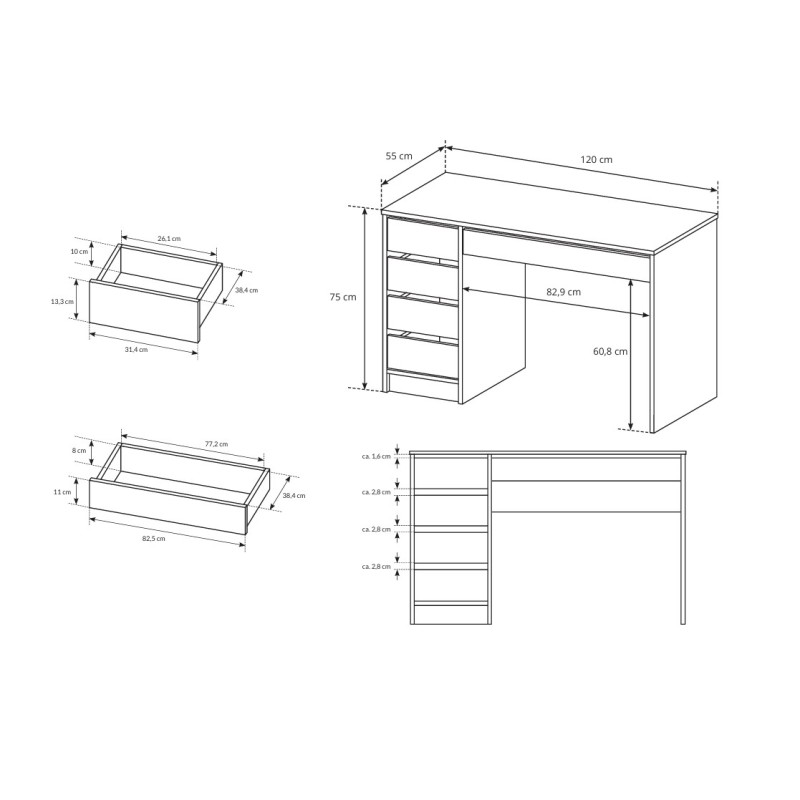 Dzięki przestronnemu blatowi, biurko ESTE oferuje doskonałą przestrzeń na laptopa, monitor oraz wszelkie dokumenty, tworząc idealną bazę do wydajnej i komfortowej pracy w domu lub w biurze.