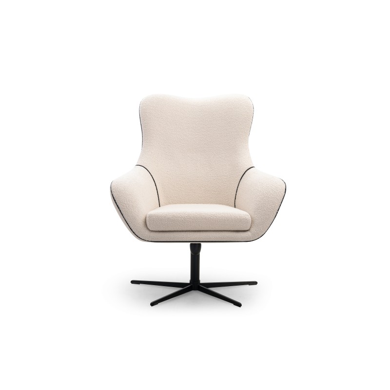 Fotel Obrotowy SOGNO do Salonu Tapicerowany Wygodny Komfortowy Styl Nowoczesny Tkanina bucle Beżowy