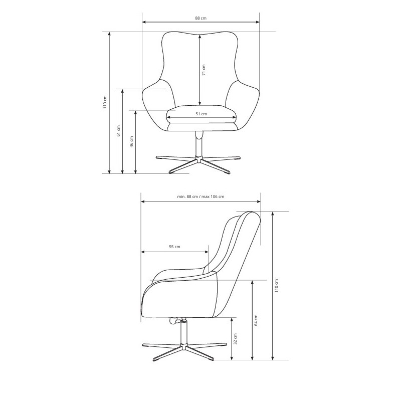 - Mebel wolnostojący: Fotel tapicerowany jest wybraną tkaniną na całej powierzchni, dzięki czemu możesz go swobodnie ustawić w dowolnym miejscu pomieszczenia.