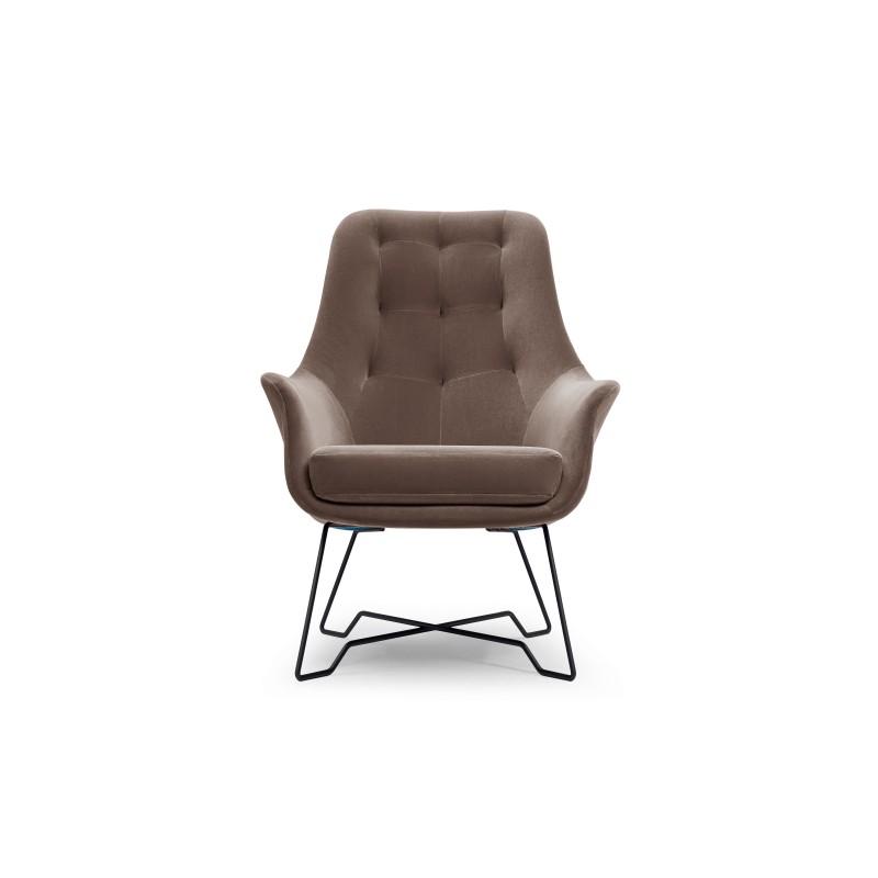 Fotel SEDUTA do Salonu Tapicerowany Wygodny Komfortowy Styl Nowoczesny Tkanina welurowa Brązowy