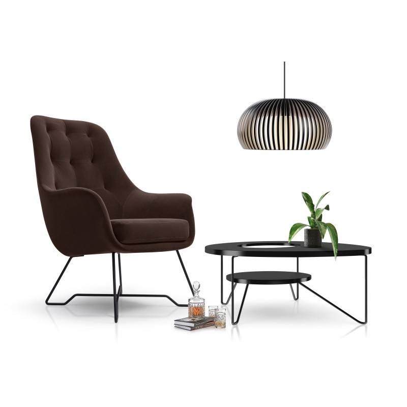 Fotel SEDUTA do Salonu Tapicerowany Wygodny Komfortowy Styl Nowoczesny Tkanina welurowa Brązowy