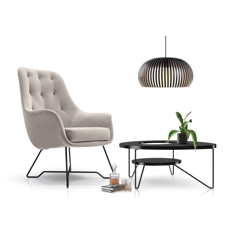 - Mebel wolnostojący: Fotel tapicerowany jest wybraną tkaniną na całej powierzchni, dzięki czemu możesz go swobodnie ustawić w dowolnym miejscu pomieszczenia.