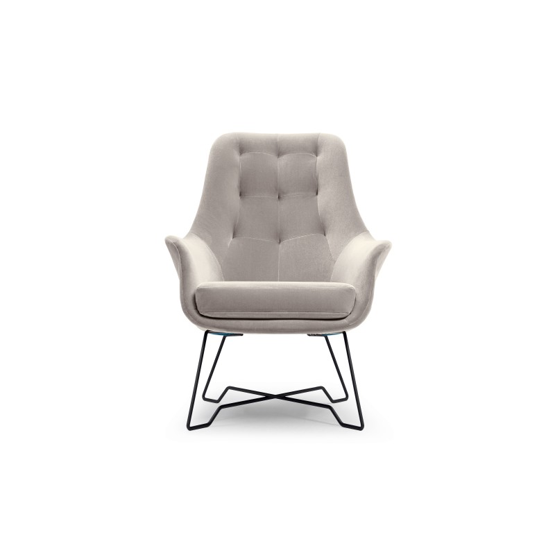 Fotel SEDUTA do Salonu Tapicerowany Wygodny Komfortowy Styl Nowoczesny Tkanina welurowa Jasnoszary
