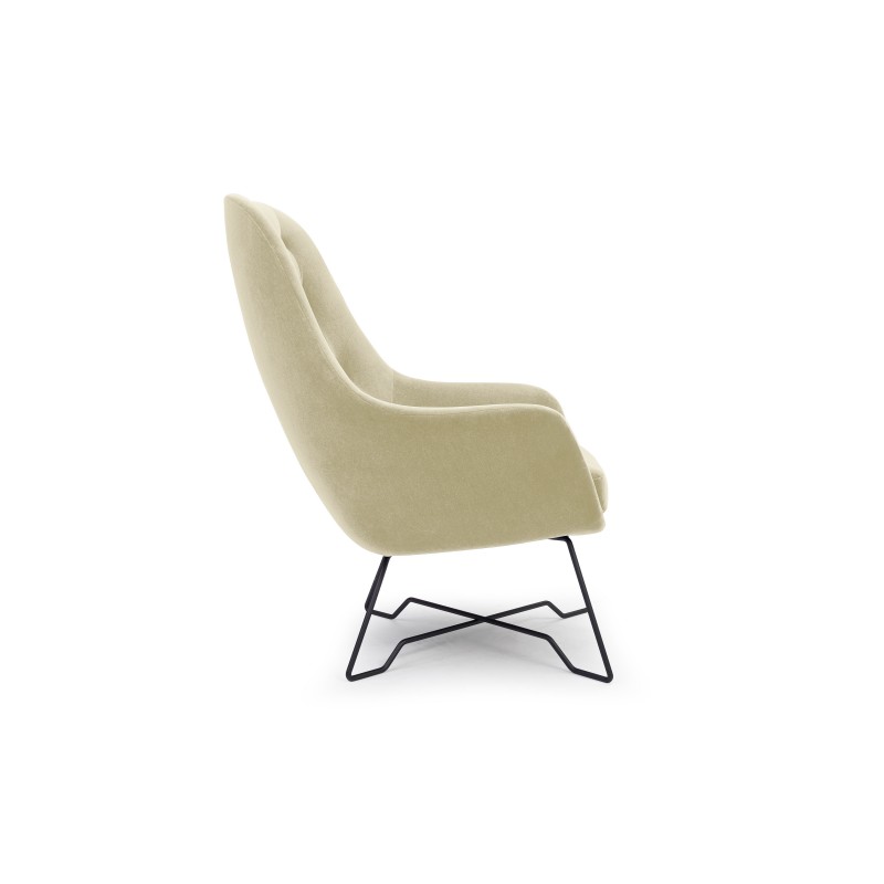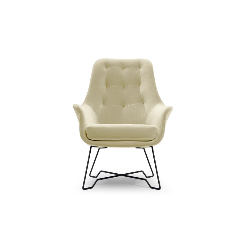 Fotel SEDUTA do Salonu Tapicerowany Wygodny Komfortowy Styl Nowoczesny Tkanina welurowa Kremowy