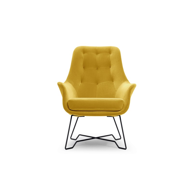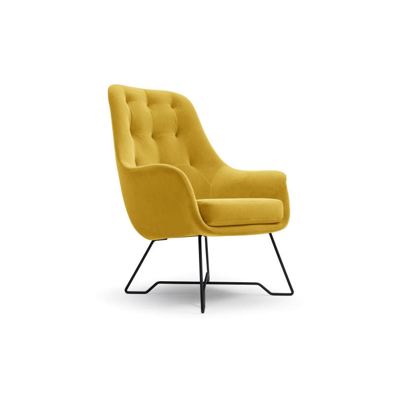 Fotel SEDUTA do Salonu Tapicerowany Wygodny Komfortowy Styl Nowoczesny Tkanina welurowa Żółty