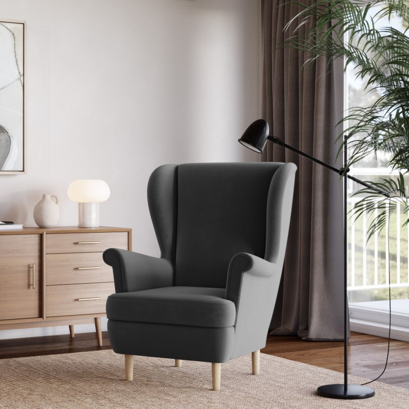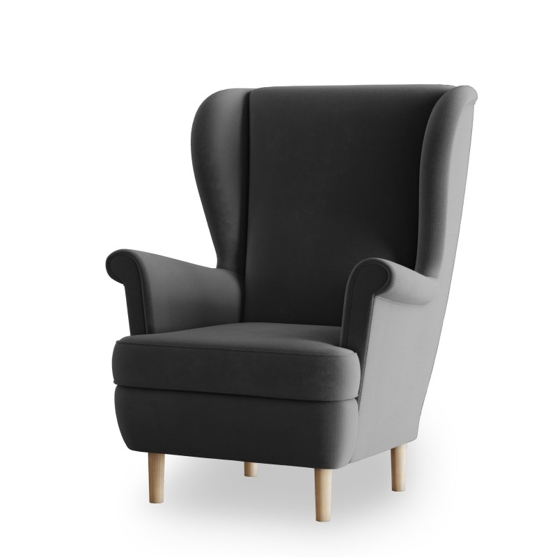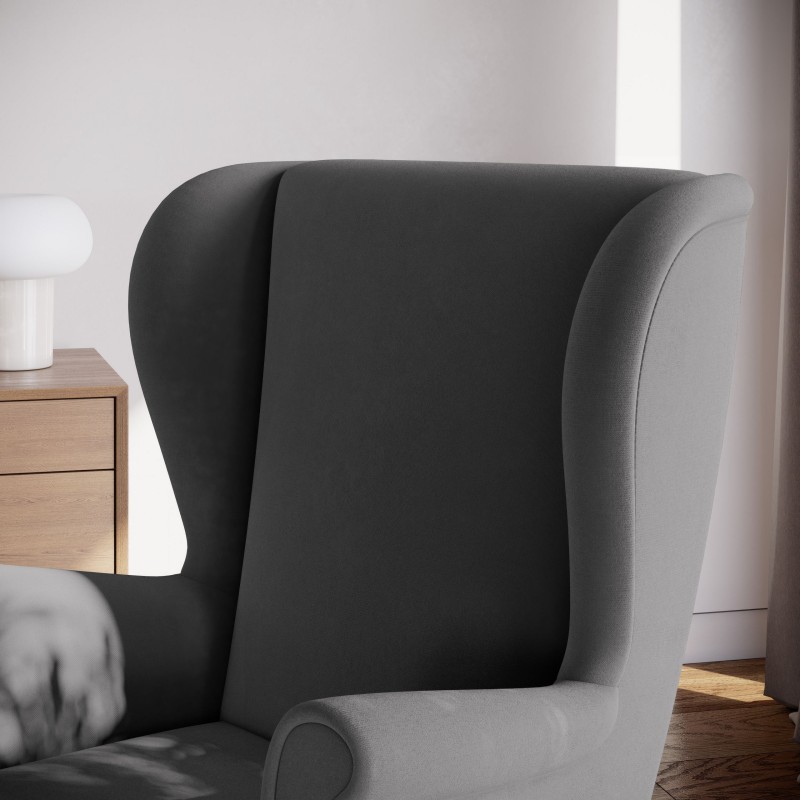- Cały fotel tapicerowany jest wybraną tkaniną, oznacza to, że jest meblem wolnostojącym, który bez problemu postawisz w dowolnym miejscu swojego salonu bądź sypialni.