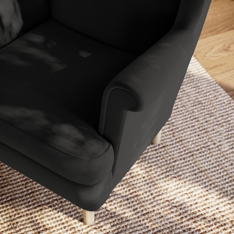 - Cały fotel tapicerowany jest wybraną tkaniną, oznacza to, że jest meblem wolnostojącym, który bez problemu postawisz w dowolnym miejscu swojego salonu bądź sypialni.