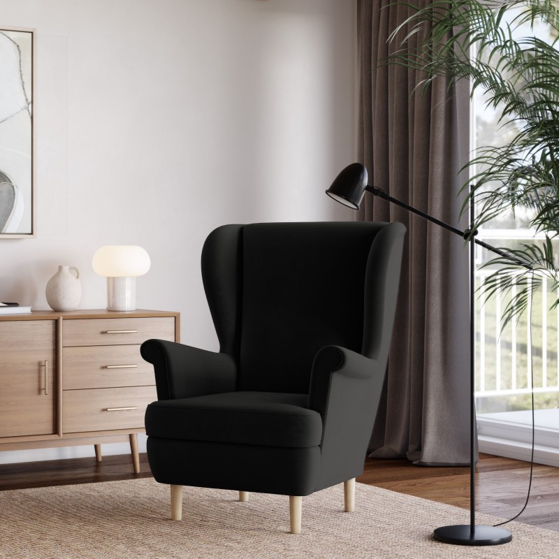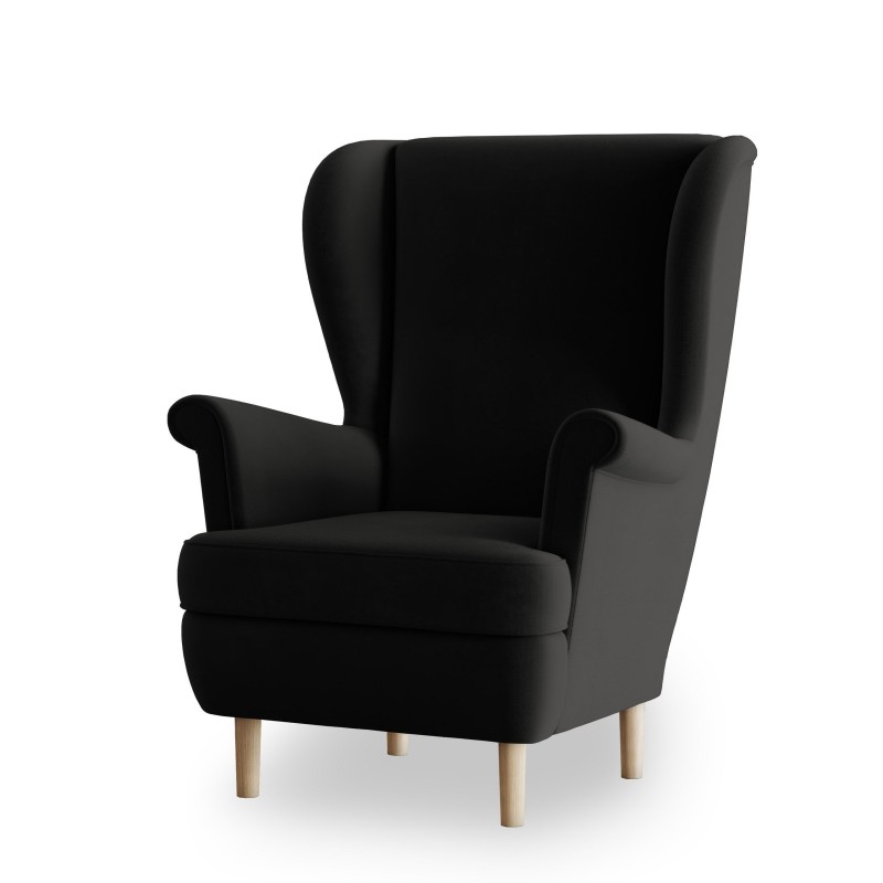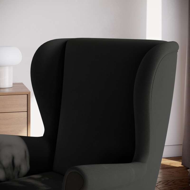 Czarny, luksusowy fotel - uszak LENTIO, stylowy mebel do Twojego salonu, wygodny