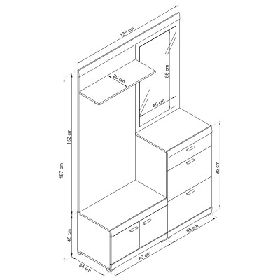 Masseno Garderoba AURA 135/197/34 cm do Przedpokoju Nowoczesna