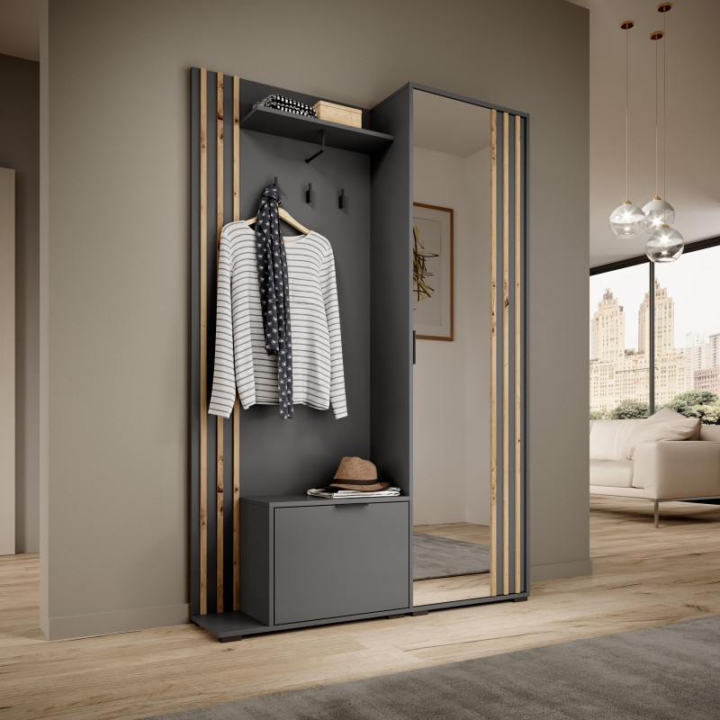 Masseno Garderoba NELIANA 131/192/40 cm do Przedpokoju Nowoczesna Grafit