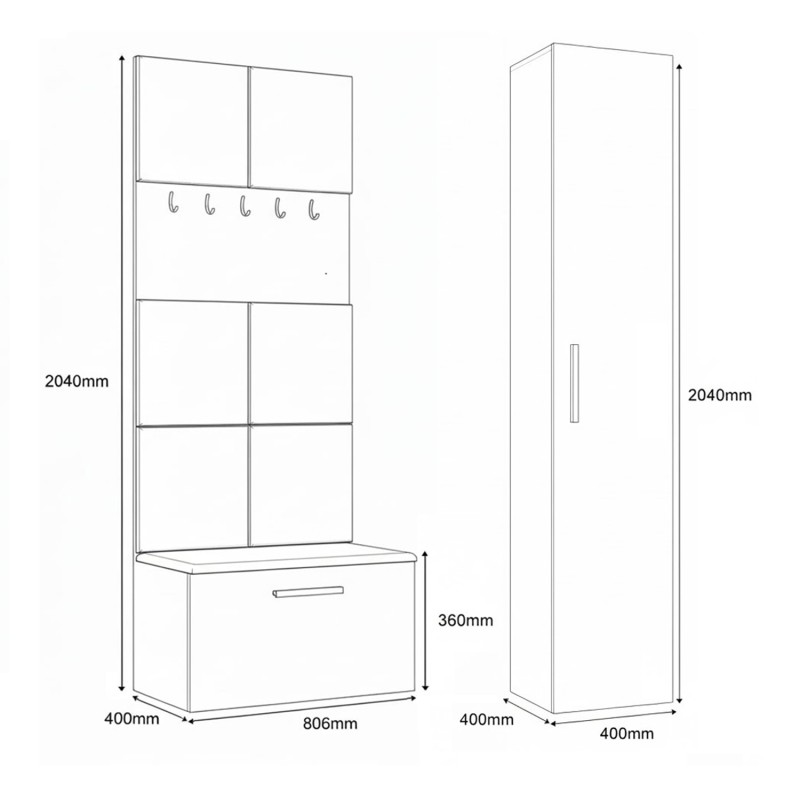 Masseno Garderoba MODULO 120,6/204/40 cm do Przedpokoju Nowoczesna Szara