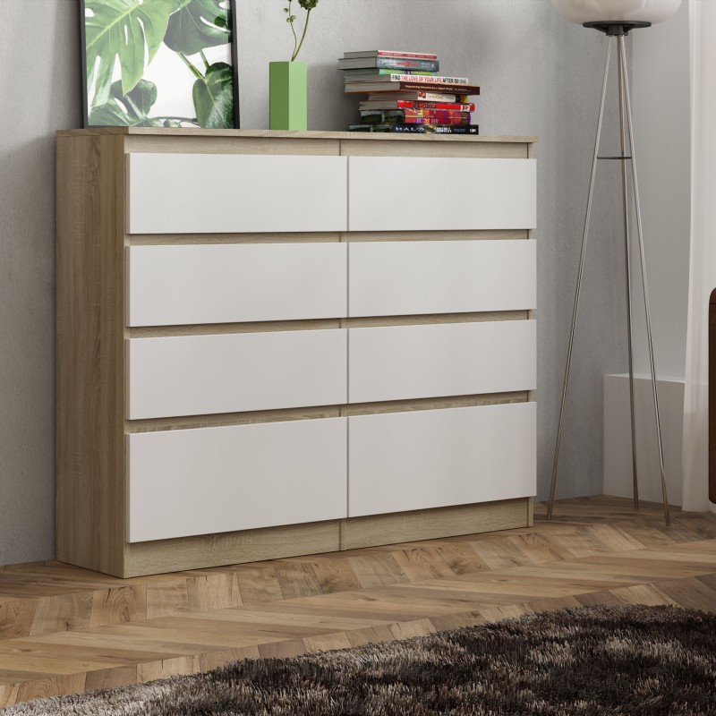 Komoda ADRIANO 120 cm do Salonu Sypialni 8 Szuflad Dąb sonoma