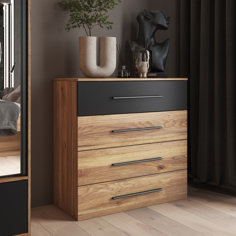 Inwestując w komodę BETTINA, masz pewność, że wybierasz trwałość i niezawodność na lata. Została ona wykonana z wysokiej jakości materiałów, co gwarantuje jej odporność na codzienne użytkowanie. Stabilna konstrukcja świadczy o jej niezwykłej wytrzymałości, dzięki czemu mebel jest nie tylko estetyczny, ale i solidny. Możesz być spokojny – komoda posłuży Ci przez długie lata, zachowując swój nienaganny i nowoczesny wygląd.