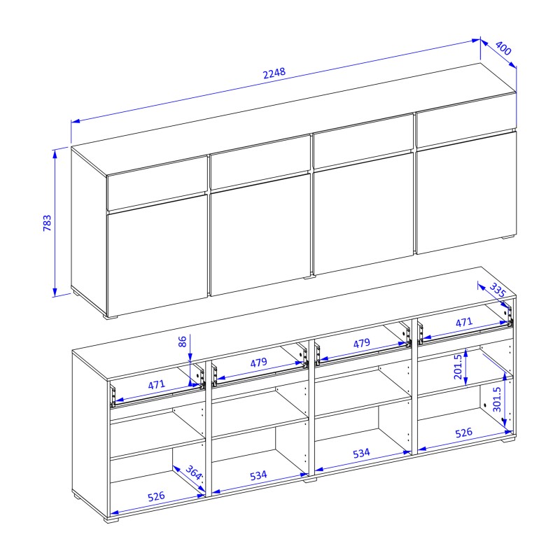 Komoda INCROCIO 225 cm do Salonu Sypialni Biały