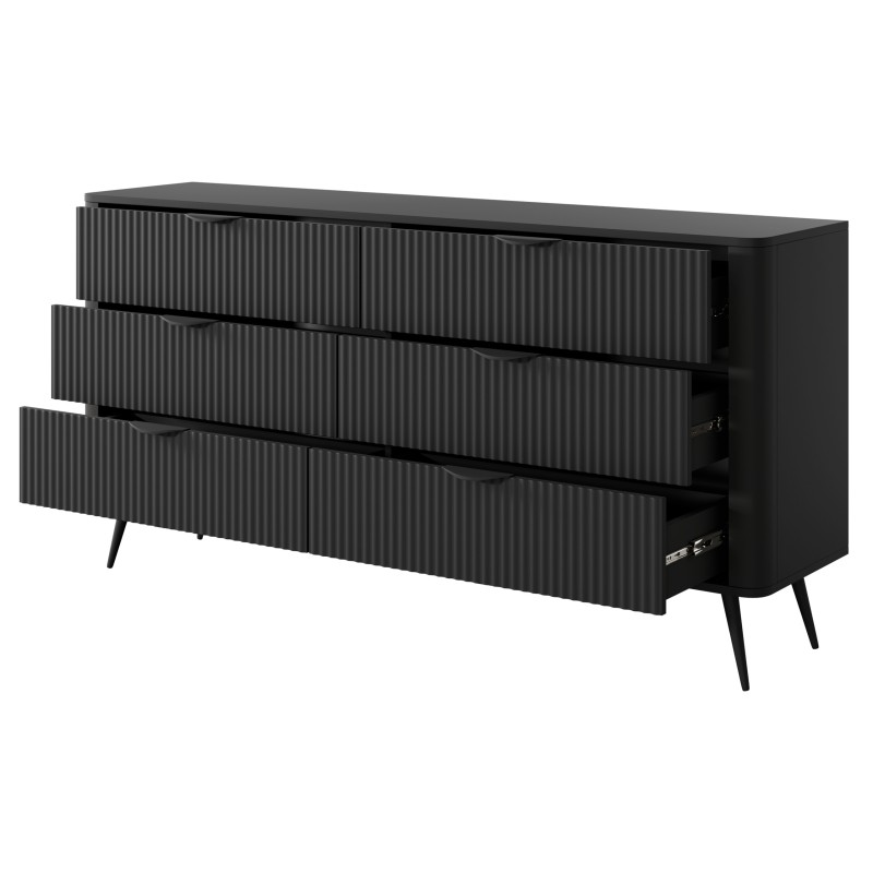 Komoda LANTANA 163 cm do Salonu Sypialni 6 Szuflad Czarny