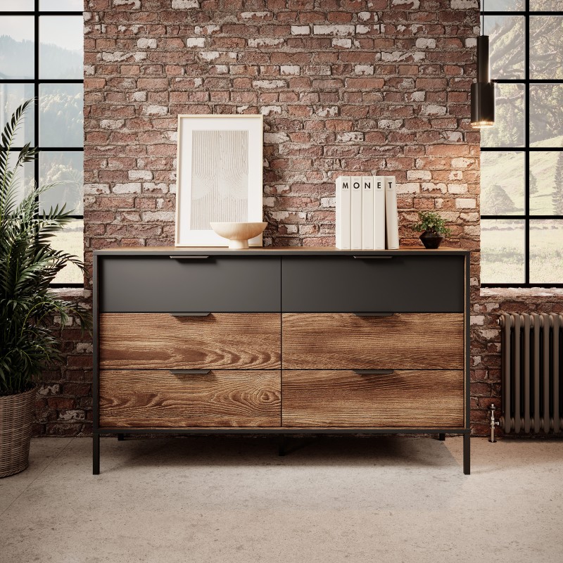 Komoda MILANO 137 cm do Salonu Sypialni 6 Szuflad Odcienie brązu