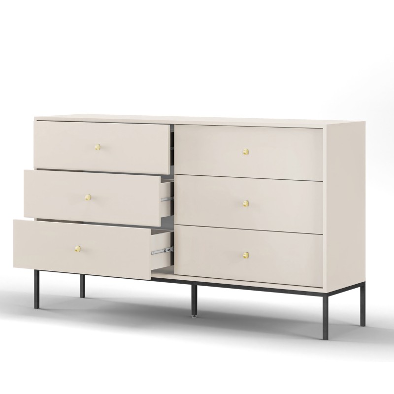 Komoda MONDO 154 cm do Salonu Sypialni 6 Szuflad Odcienie beżu