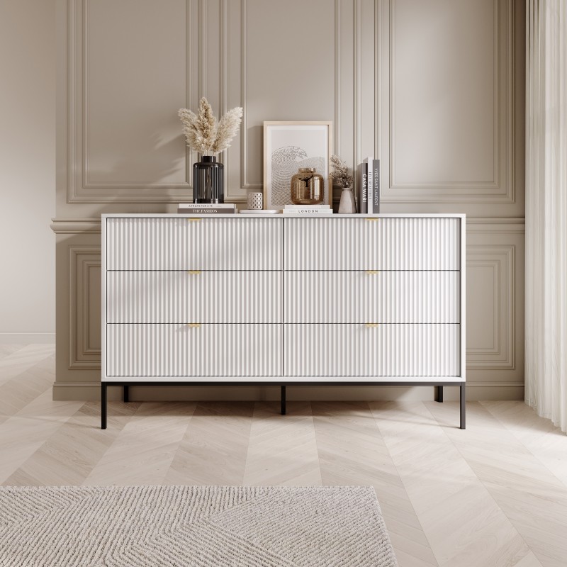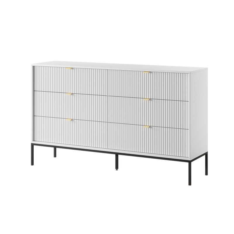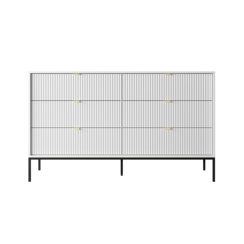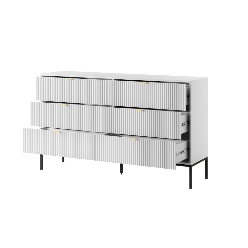 Komoda STELLARE 154 cm do Salonu Sypialni 6 Szuflad Biały