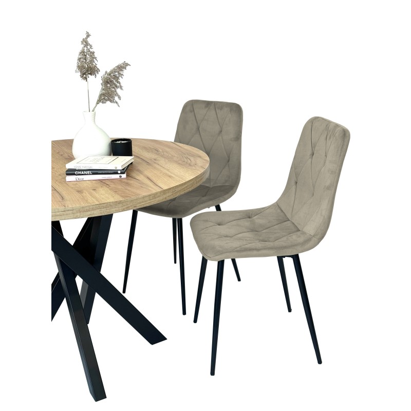 Zestaw dwóch krzeseł tapicerowanych CELMO w beżowym kolorze, krzesła do jadalni i salonu