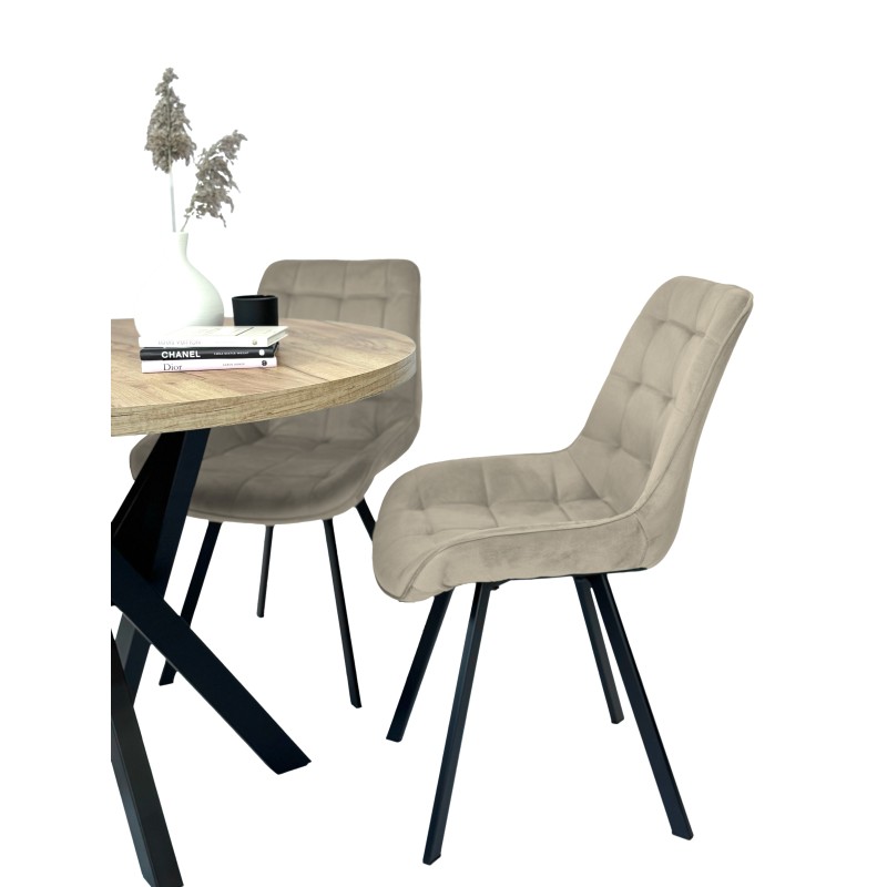 - Nowoczesny design – tapicerowane krzesło z eleganckim pikowanym wzorem, które świetnie komponuje się z różnymi stylami wnętrzarskimi.