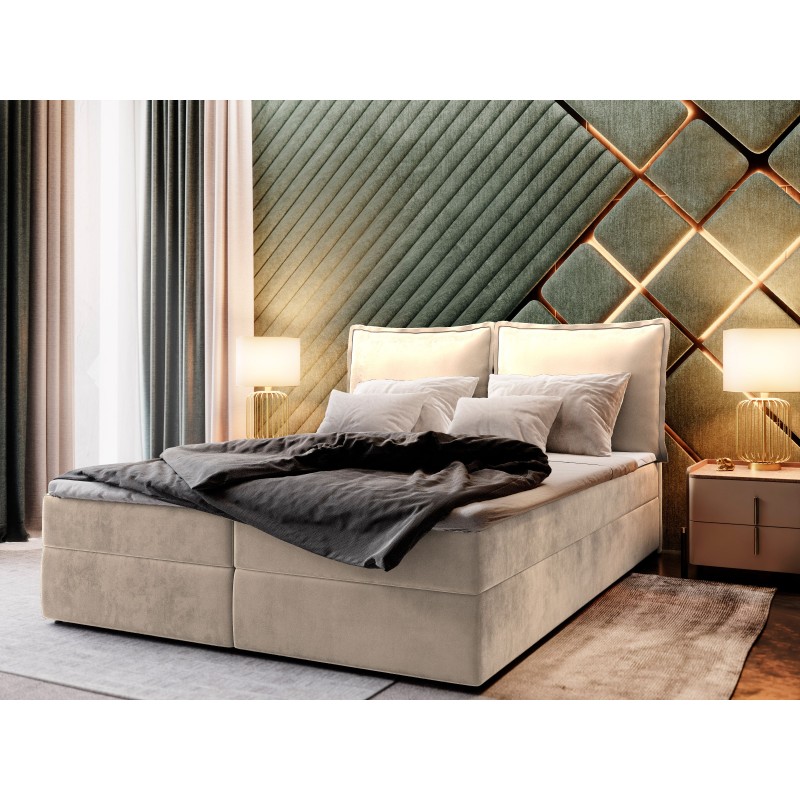 Masseno Łóżko kontynentalne LENTE z pojemnikiem na pościel 180x200 cm - Kremowy, MONOLITH 02