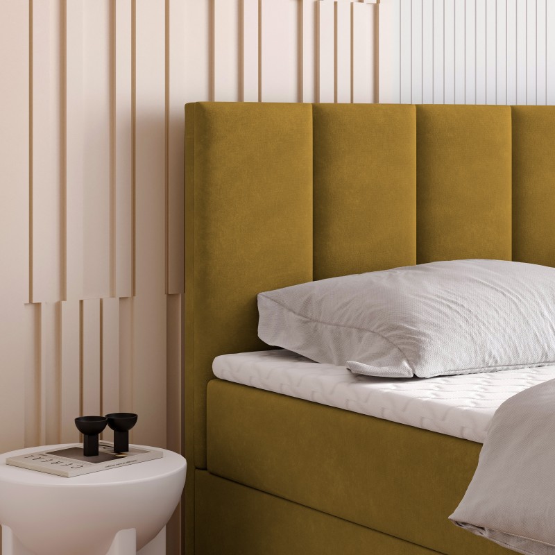 - Miękkie, obite tkaniną wezgłowie nie tylko podkreśla styl łóżka, ale też staje się wygodnym oparciem w każdej sytuacji. Zanurz się w lekturze, odpręż przy grze na konsoli lub delektuj się filmowym wieczorem – wszystko to z maksymalnym komfortem.