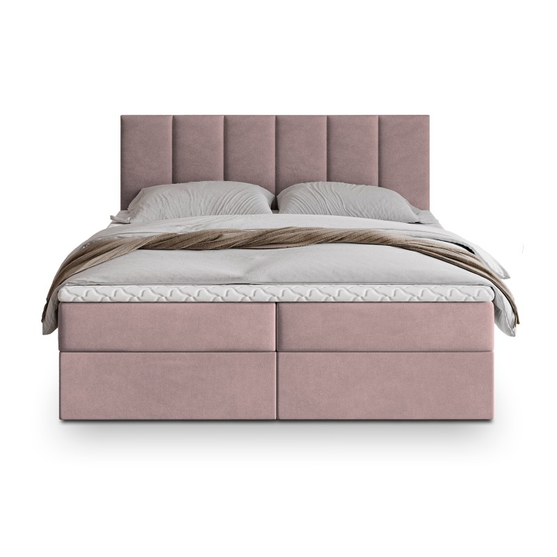 Serce łóżka stanowi materac bonellowy. To rozwiązanie, które zapewnia doskonałe podparcie sylwetki, odpowiednie rozłożenie ciężaru i komfortową pozycję przez całą noc. Dwa przestronne schowki umieszczone w podstawie łóżka bez trudu pomieszczą kołdry, poduszki, sezonową odzież czy inne domowe tekstylia.