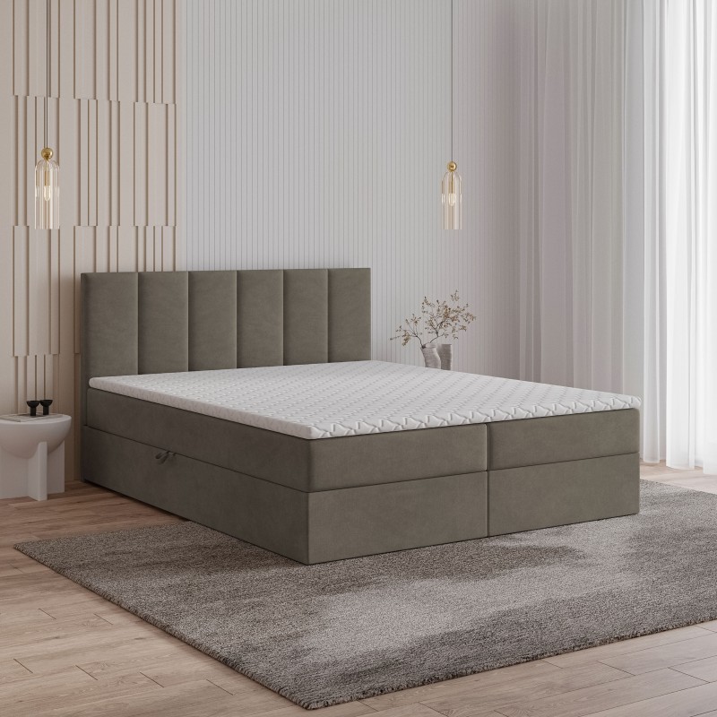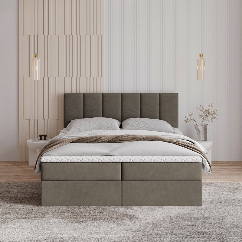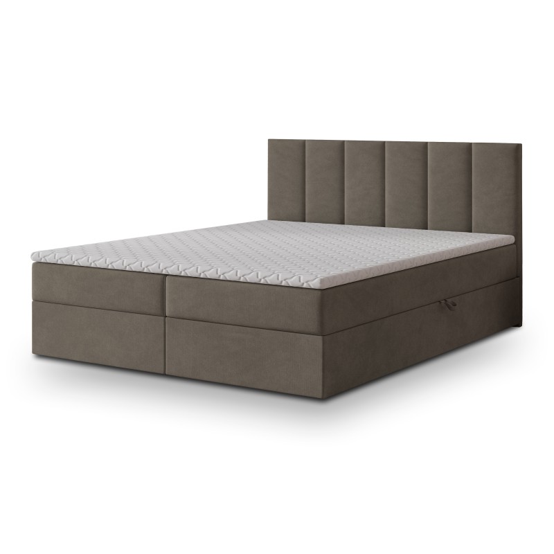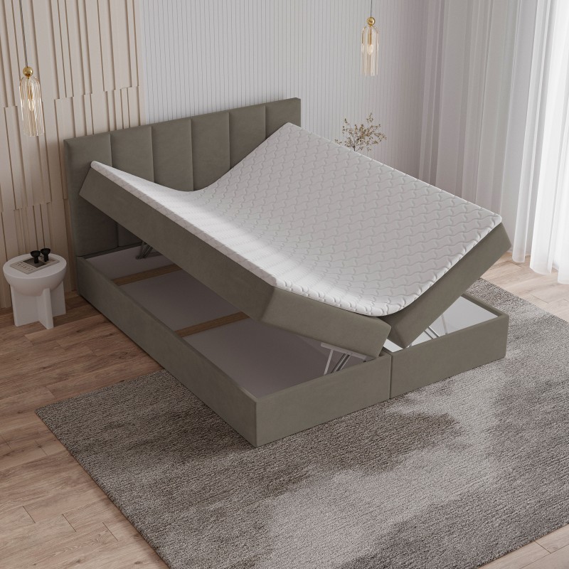 Serce łóżka stanowi materac bonellowy. To rozwiązanie, które zapewnia doskonałe podparcie sylwetki, odpowiednie rozłożenie ciężaru i komfortową pozycję przez całą noc. Dwa przestronne schowki umieszczone w podstawie łóżka bez trudu pomieszczą kołdry, poduszki, sezonową odzież czy inne domowe tekstylia.