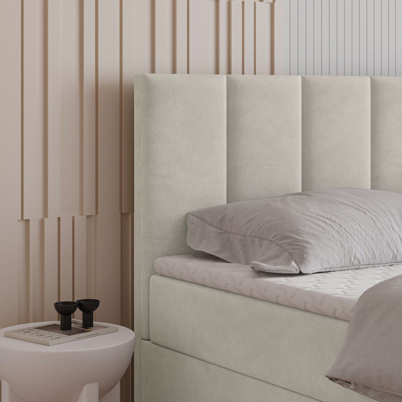 - Miękkie, obite tkaniną wezgłowie nie tylko podkreśla styl łóżka, ale też staje się wygodnym oparciem w każdej sytuacji. Zanurz się w lekturze, odpręż przy grze na konsoli lub delektuj się filmowym wieczorem – wszystko to z maksymalnym komfortem.