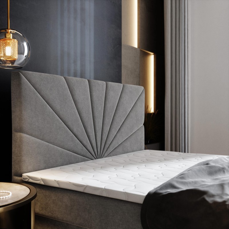 Wzór łóżka kontynentalnego MURI przypomina piękny pawi ogon, co nadaje mu wyjątkowego uroku i elegancji. Możesz dostosować MURI do swoich potrzeb. Łóżko dostępne jest w wielu tkaninach oraz kolorach, dzięki czemu łatwo dopasujesz je do wystroju swojej sypialni.