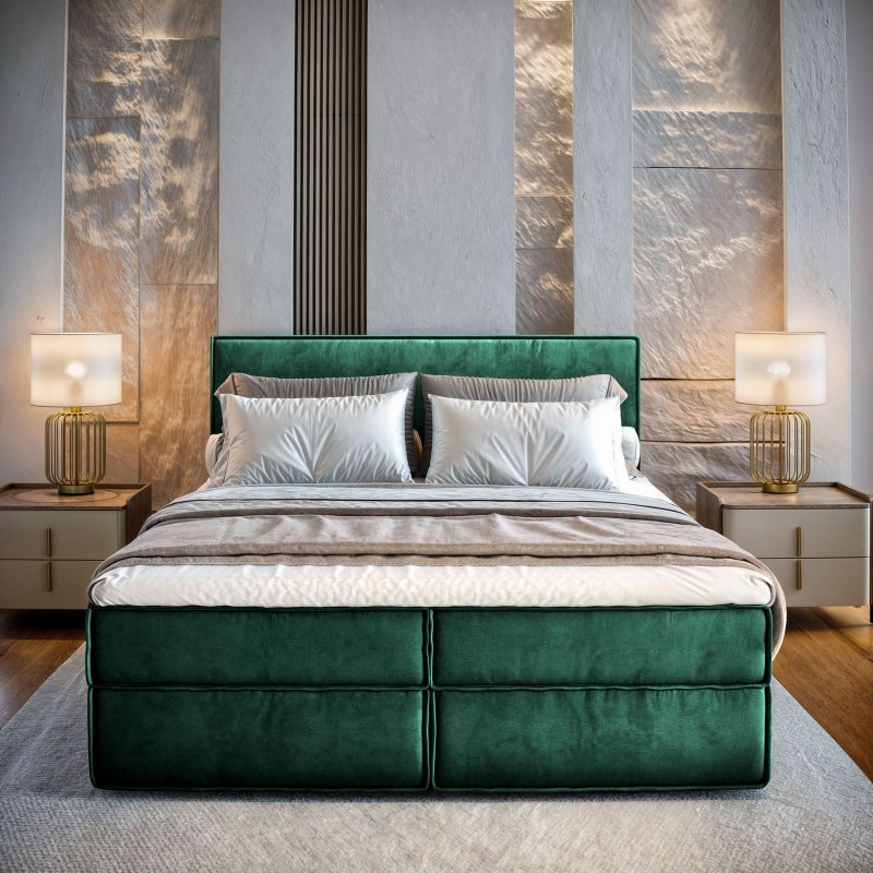 Masseno Łóżko kontynentalne PELLIO z pojemnikiem na pościel 180x200 cm - Butelkowa zieleń, MONOLITH 37