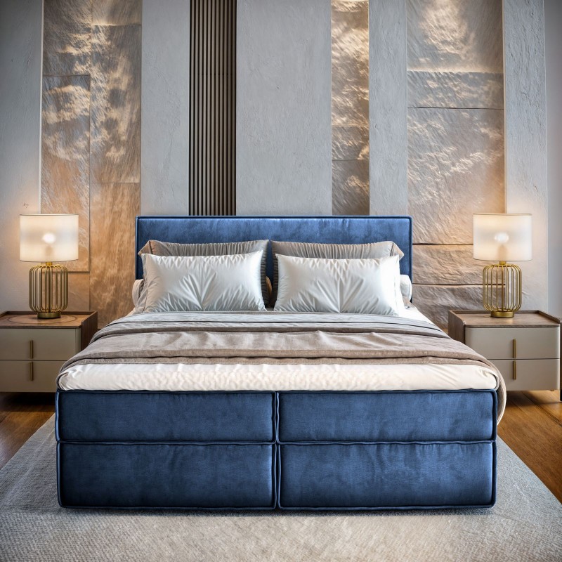 Masseno Łóżko kontynentalne PELLIO z pojemnikiem na pościel 180x200 cm - Niebieski, MONOLITH 77