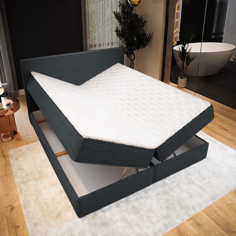 Masseno Łóżko kontynentalne PELLIO z pojemnikiem na pościel 180x200 cm - Grafitowy, POSO 34