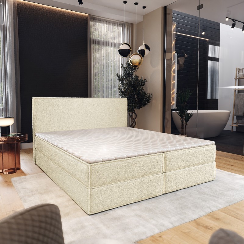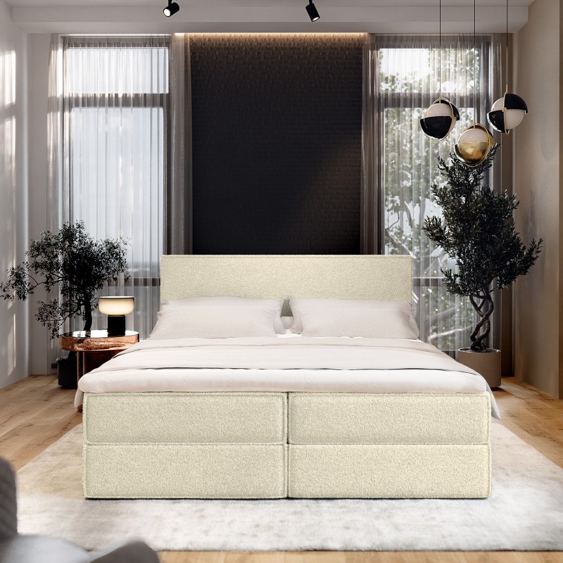 Masseno Łóżko kontynentalne PELLIO z pojemnikiem na pościel 180x200 cm - Kremowy, QUELLE 02