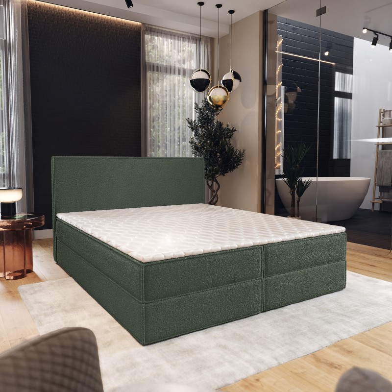 Masseno Łóżko kontynentalne PELLIO z pojemnikiem na pościel 180x200 cm - Zielony, QUELLE 37