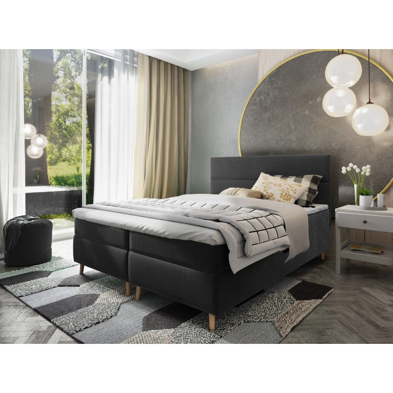 Najlepszej jakości materiały oraz drewno przyciągają wzrok wszystkich, nikt nie przejdzie obojętnie obok tego mebla. To harmonijne połączenie nowoczesności z naturalnym pięknem drewna. Jego stonowany design doskonale wpisuje się w różnorodne aranżacje wnętrz, nadając im subtelny, nowoczesny wyraz. Wzdłużne przeszycie, które zdobi całą konstrukcję, nie tylko dodaje łóżku charakteru, ale także optycznie poszerza przestrzeń, tworząc wrażenie większego pomieszczenia.