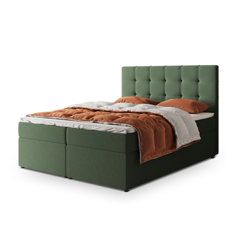 - Praktyczne rozwiązanie na co dzień: Dzięki wbudowanemu pojemnikowi na pościel, błyskawicznie schowasz kołdry i poduszki. Automat sprężynowy ułatwia otwieranie pojemnika od boku łóżka.