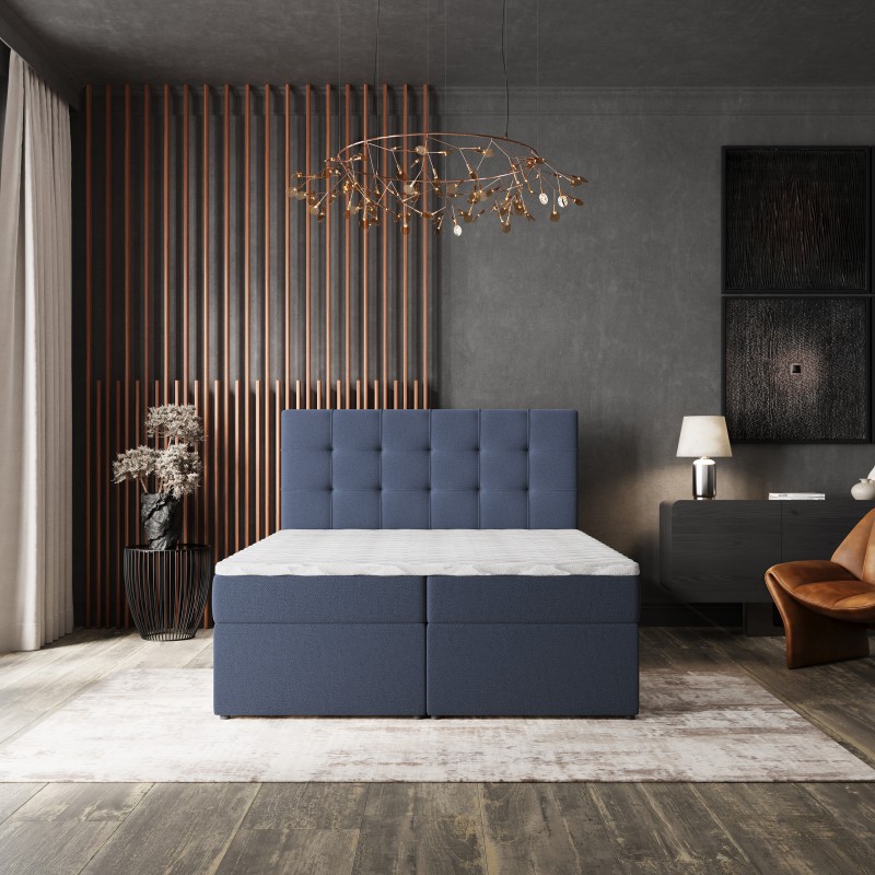 - Praktyczne rozwiązanie na co dzień: Dzięki wbudowanemu pojemnikowi na pościel, błyskawicznie schowasz kołdry i poduszki. Automat sprężynowy ułatwia otwieranie pojemnika od boku łóżka.