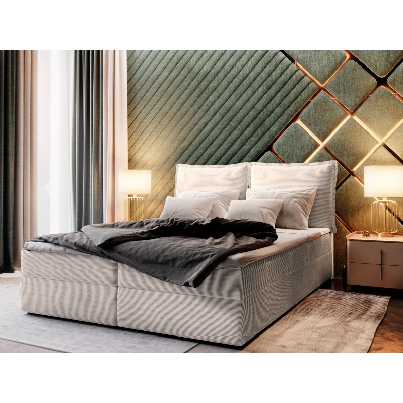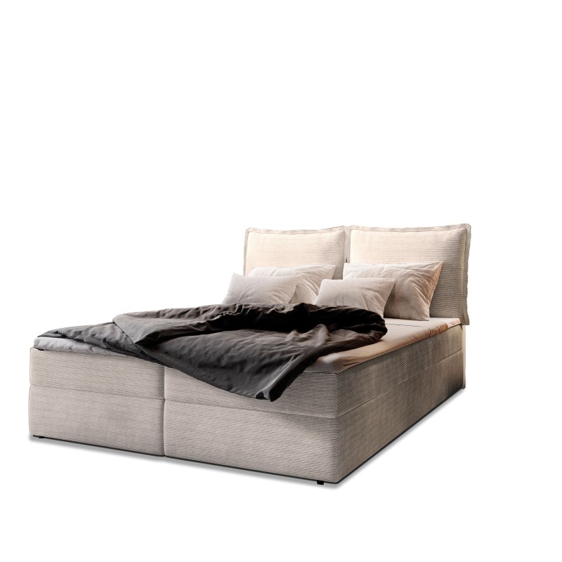 Łóżko kontynentalne LENTE posiada połączony ze skrzyniami materac sprężynowy, otapicerowany materiałem, który znajduje się na całym łóżku. Dostosowywanie się do wagi użytkownika, oraz dobra wentylacja sprawiają, że sen będzie zdrowy i regenerujący.