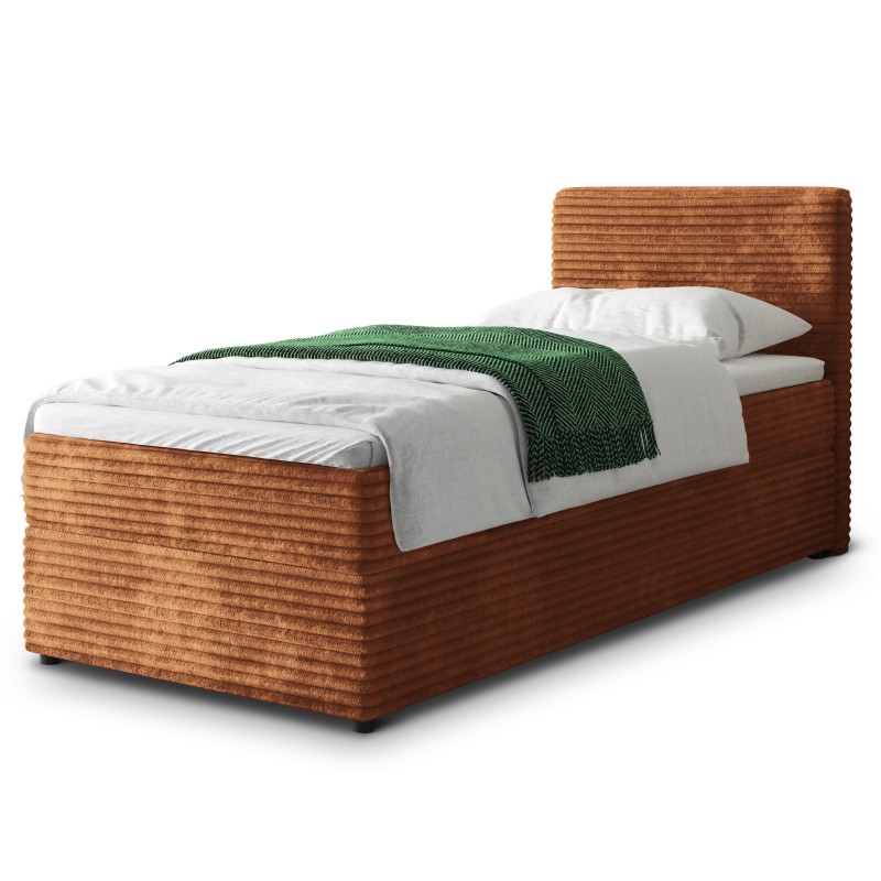 - Praktyczne rozwiązanie na co dzień: Dzięki wbudowanemu pojemnikowi na pościel, błyskawicznie schowasz kołdry i poduszki. Automat sprężynowy ułatwia otwieranie pojemnika od boku łóżka.