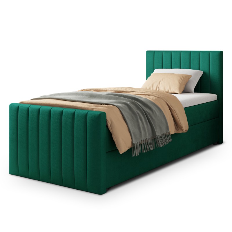 - Praktyczne rozwiązanie na co dzień: Dzięki wbudowanemu pojemnikowi na pościel, błyskawicznie schowasz kołdry i poduszki. Automat sprężynowy ułatwia otwieranie pojemnika od boku łóżka.