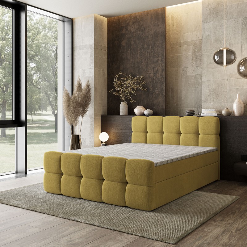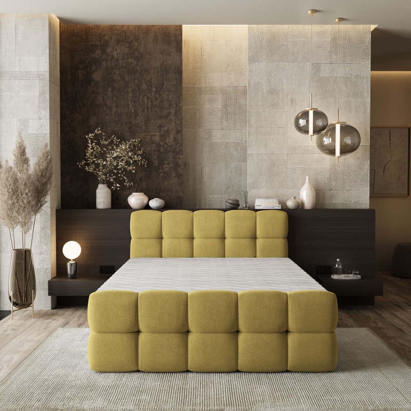Masseno Łóżko kontynentalne BRUME z pojemnikiem na pościel 140x200 cm - Żółty, SORO 40