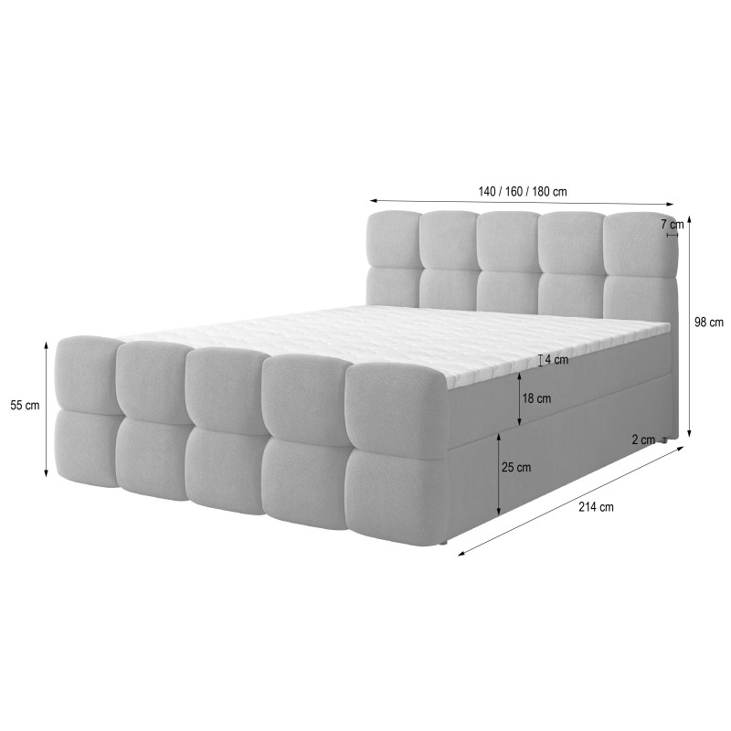 - Pełen komfort i wsparcie: Główny materac bonellowy (H2/H3), połączony z wypełnieniem piankowym, gwarantuje elastyczność i odpowiednie podparcie dla ciała, co sprawia, że każda noc spędzona na tym łóżku to czysta przyjemność.