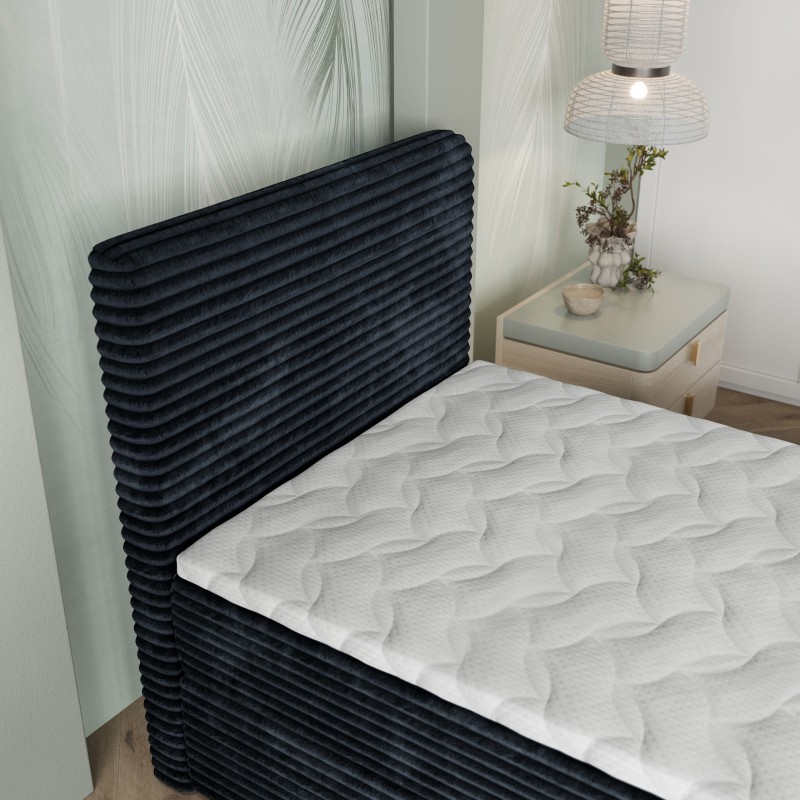 - Praktyczne rozwiązanie na co dzień: Dzięki wbudowanemu pojemnikowi na pościel, błyskawicznie schowasz kołdry i poduszki. Automat sprężynowy ułatwia otwieranie pojemnika od boku łóżka.