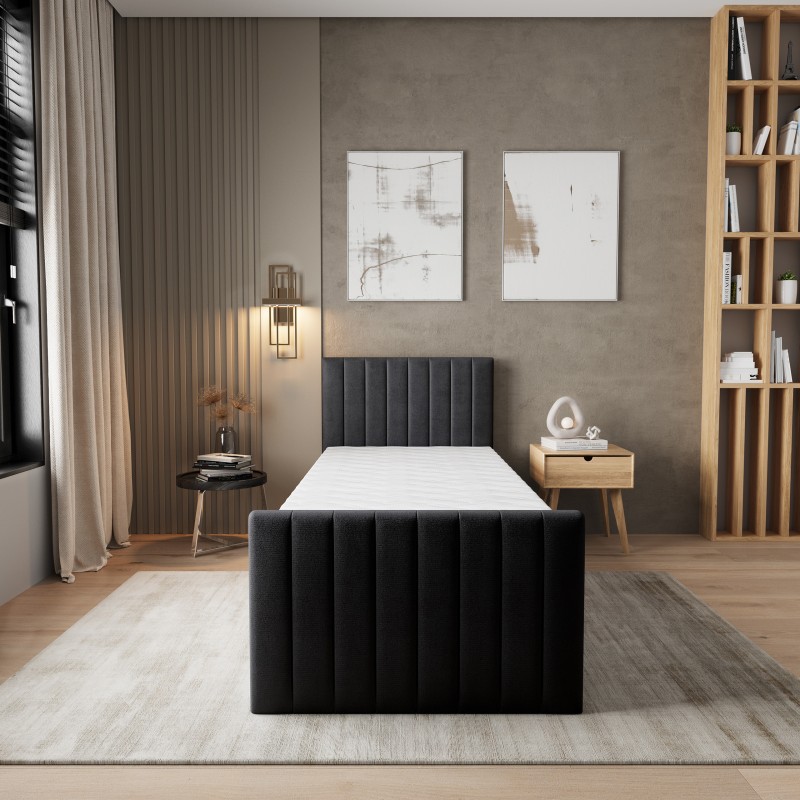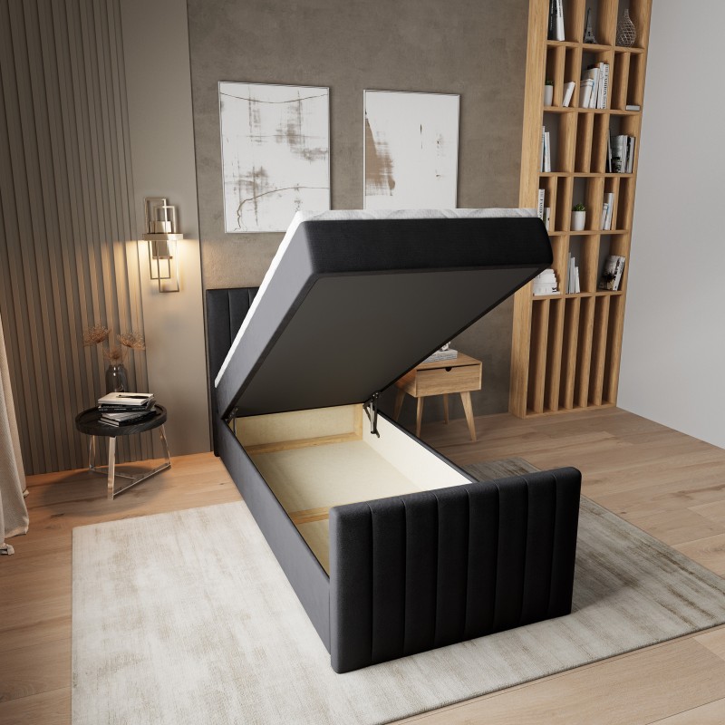 Masseno Łóżko kontynentalne ARION z pojemnikiem na pościel 100x200 cm - Czarny, KRONOS 07