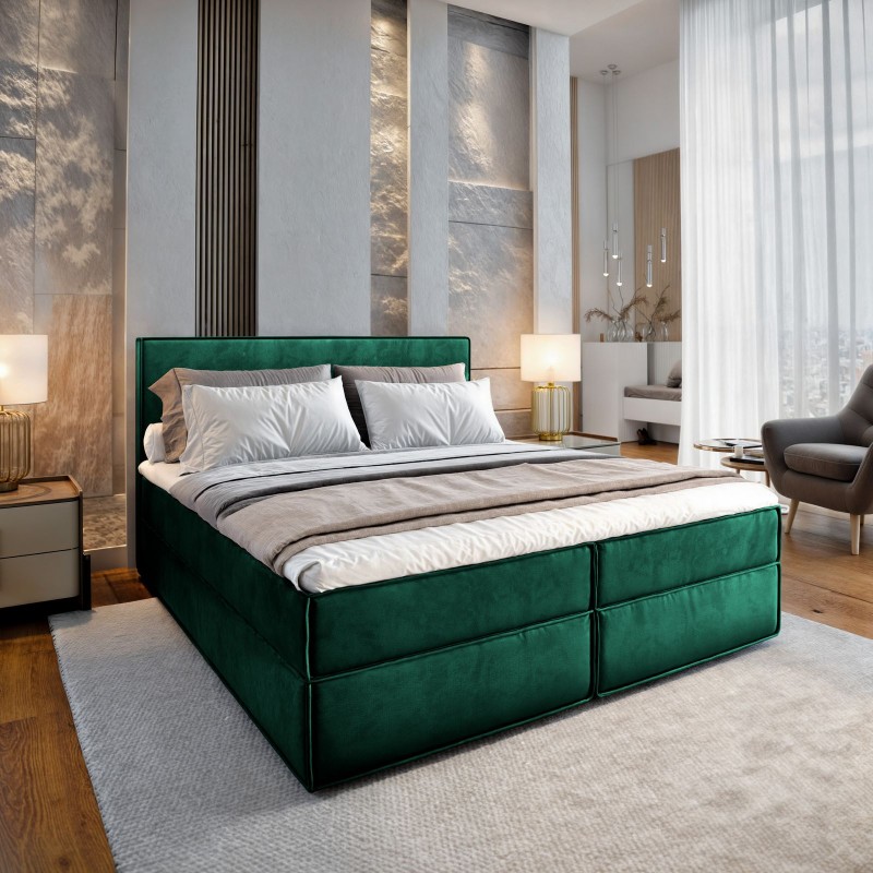 Wyobraź sobie, jak każdego dnia wracasz do domu i zanurzasz się wieczorem w niepowtarzalnym komforcie, jaki oferuje łóżko PELLIO. To nie tylko mebel, ale i centralny punkt Twojej sypialni, który wprowadza do niej elegancję i luksus. Dzięki wyjątkowej kombinacji nowoczesnych linii i klasycznego stylu, łóżko kontynentalne PELLIO staje się wizualną ucztą, dodając charakteru każdemu wnętrzu. Obite najwyższej jakości welurową tkaniną w modnych, ale jednocześnie ponadczasowych kolorach, łóżko to łączy estetykę z praktycznością, tworząc idealne miejsce do wypoczynku.