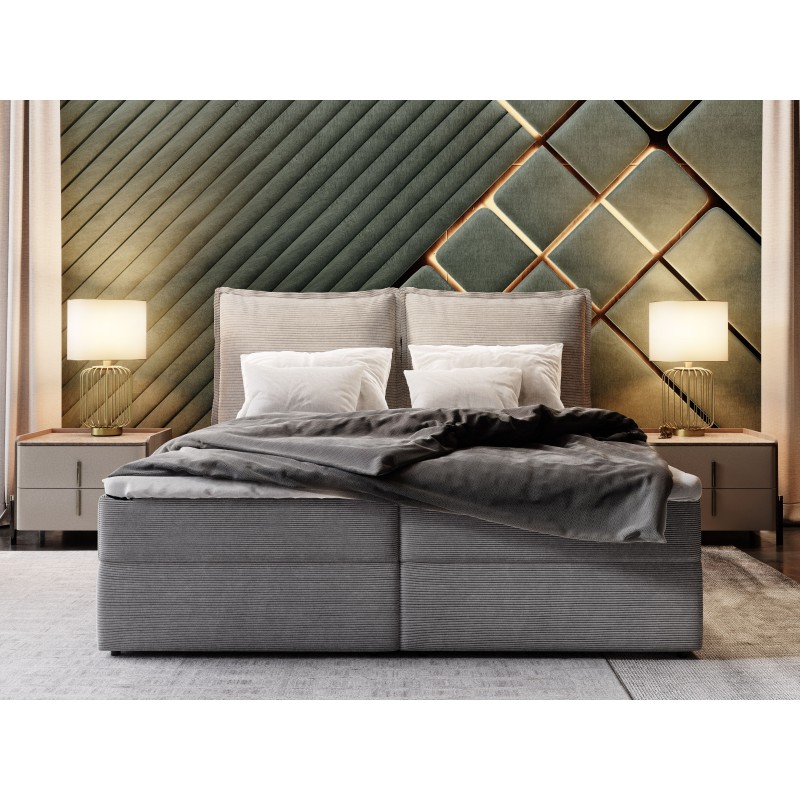 Łóżko kontynentalne LENTE posiada połączony ze skrzyniami materac sprężynowy, otapicerowany materiałem, który znajduje się na całym łóżku. Dostosowywanie się do wagi użytkownika, oraz dobra wentylacja sprawiają, że sen będzie zdrowy i regenerujący.