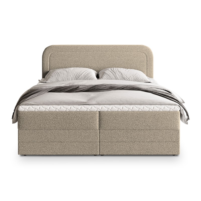 Masseno Łóżko kontynentalne ARMEL z pojemnikiem na pościel 140x200 cm - Beżowy, NOW OR NEVER 05
